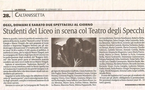 > Studenti del liceo in scena col Teatro degli Specchi. Bastardi A Cena, a Caltanissetta.
